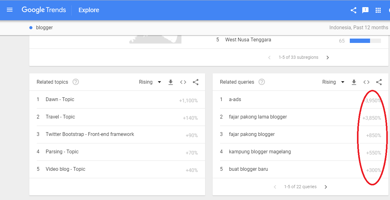 dengan menggunakan google trends blogger bisa melihat trending topic, penelusruan terbanyak, kata kunci popular jadi setelah melihat google trends anda bisa mendapatkan ide tentang apa tulisan yang akan anda posting